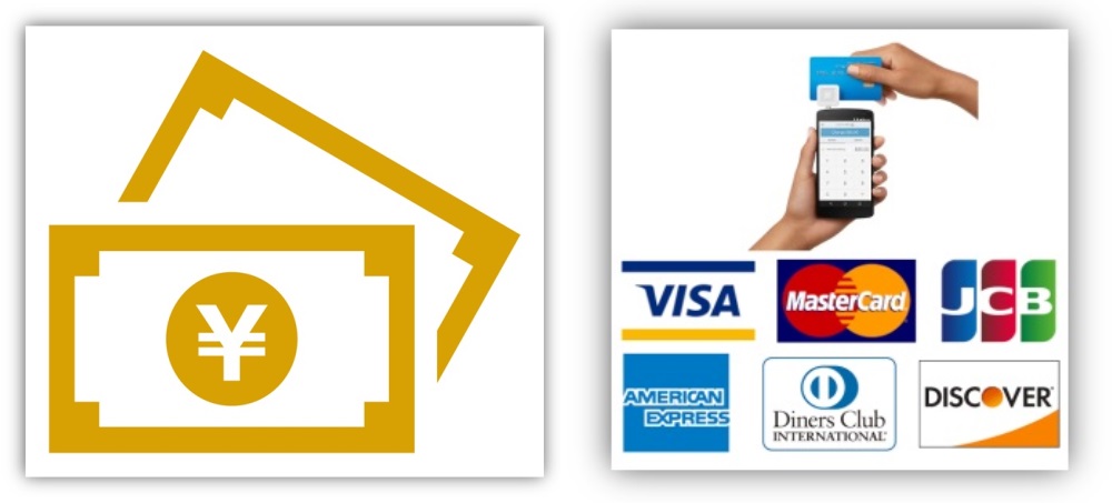 現金、又はカード決済に