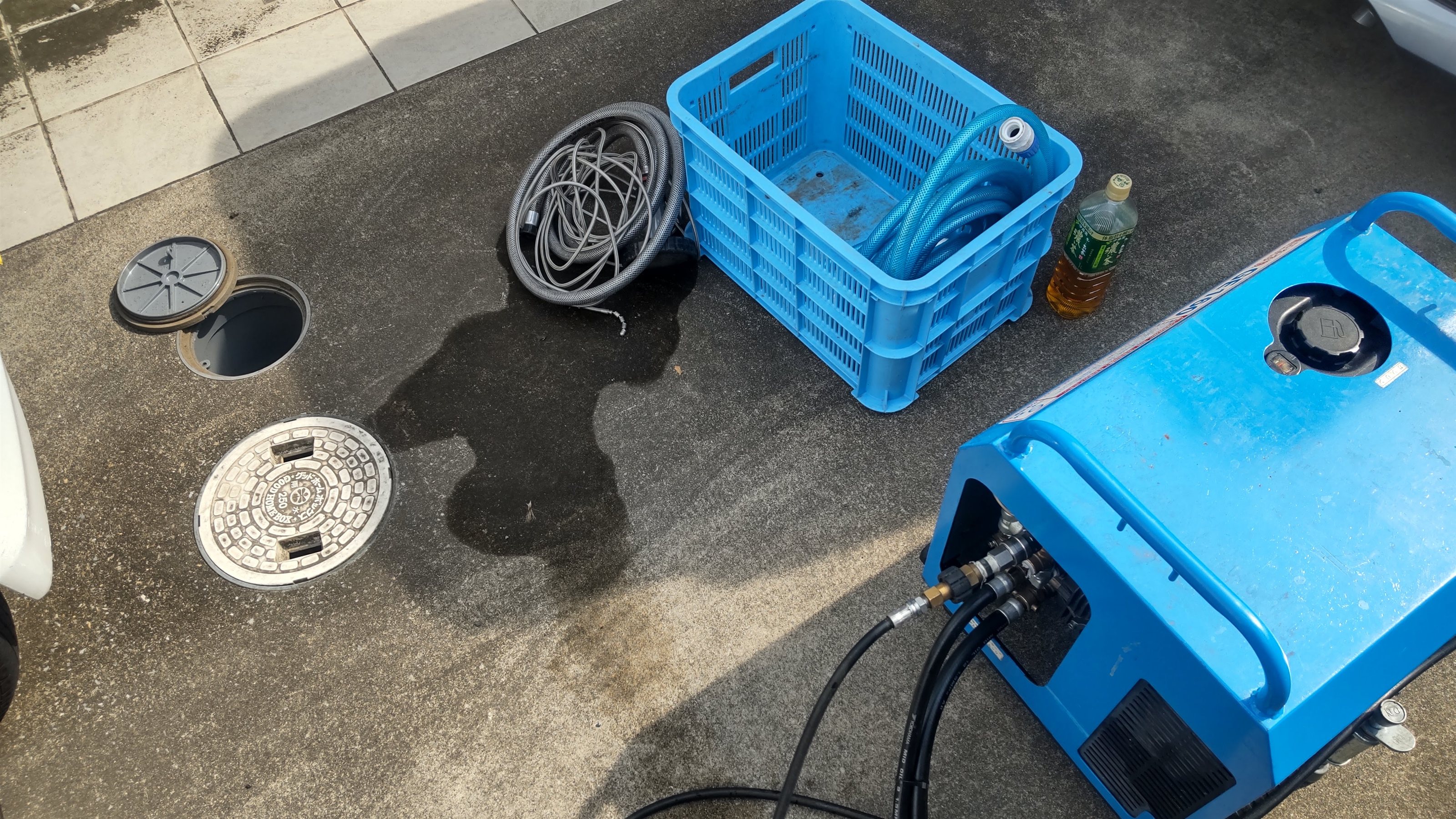 マス蓋を開け排水管洗浄して