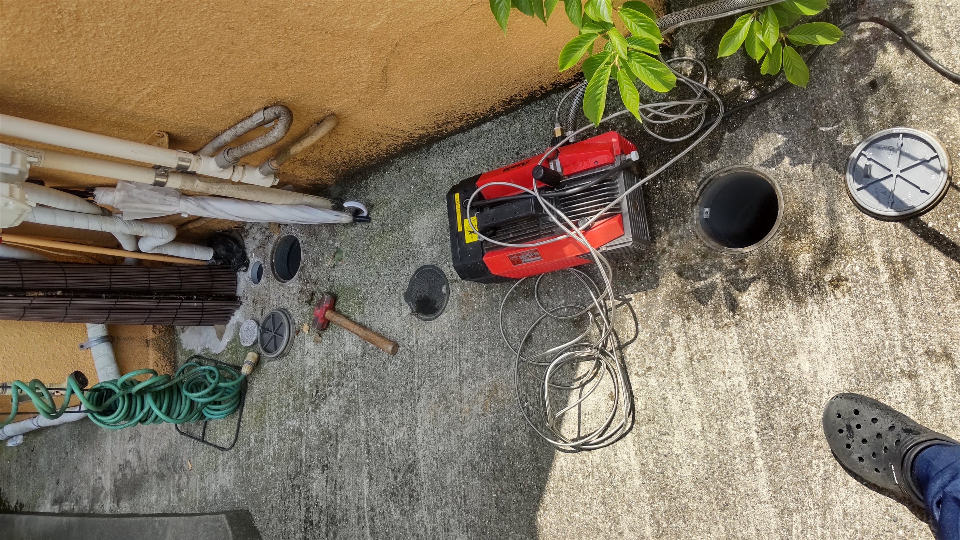 めて排水管の洗浄作業を